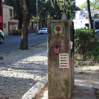 No projeto @tiide.art intervém na paisagem urbana de diversas cidades com frases bordadas.